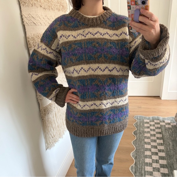 Heavy wool sweater in stunning multicolor pattern.