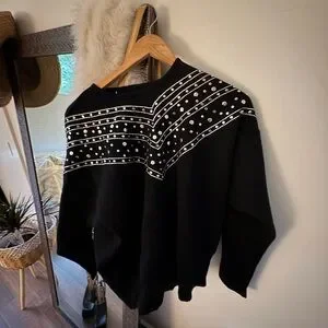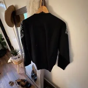 Elevate your style with this wool black cardigan, adorned with studded accents. Perfect for any occasion.