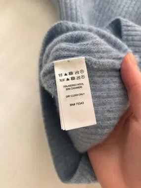 EUC wool and cashmere blend sweater in blue. 3/4 length sleeves. Mock neck.