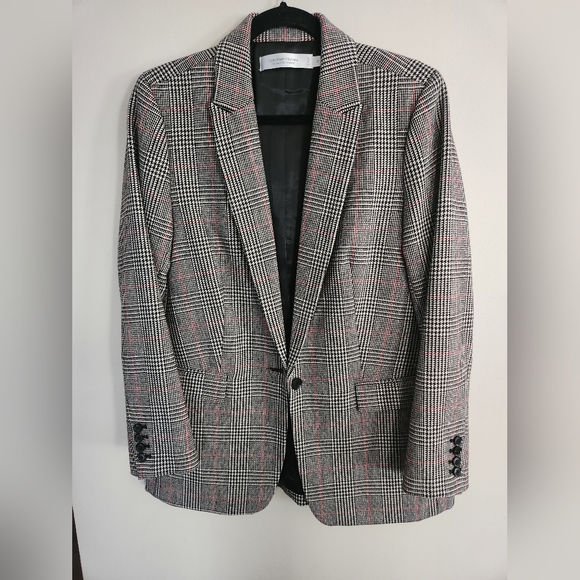 Beautiful houndstooth wool blazer. No stretch due to wool material would fit a size 8. Worn once, excellent condition. Bought from simons. Classic piece for any wardrobe.