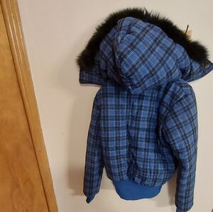 Wool blend jacket with real fur hood size S, it's like a bomber style. in very good condition.