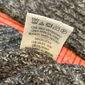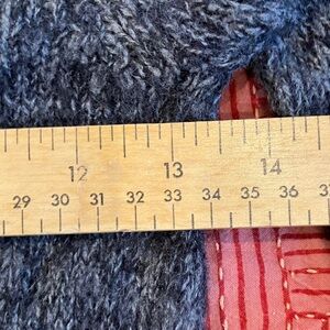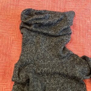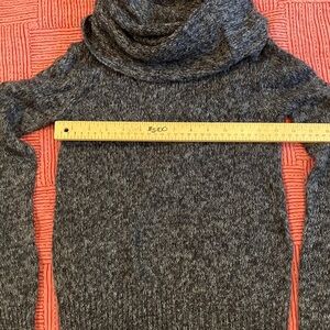 Good used condition no holes no pilling Women’s size medium wool turtleneck sweater , size says medium but fits more like a small in my opinion see photos for dimensions, fabric is stretchy, 30% wool. Color is charcoal grey / black.