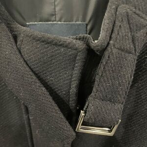 Max Mara long wool black coat - 39" Length; pit to pit - 20"; snaps and 2 way zipper