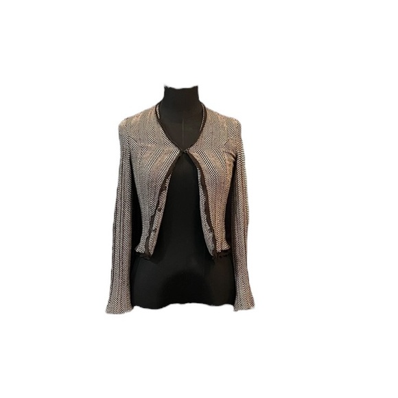 Vintage Style Tan/Brown Wool Houndstooth Cardigan Jacket – XS (Fits Like)