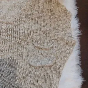 Short sleeve slouch, off shoulder option, wool/polyester blend knit sweater, with 1 pocket, natural waist length, soft feel
