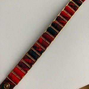 Cute, snap on wool tartan and metal Banana Republic bracelet. 8 inches long, 7 inches interior once it's snapped shut. Tartan is red, green, black. Worn once, in great shape.