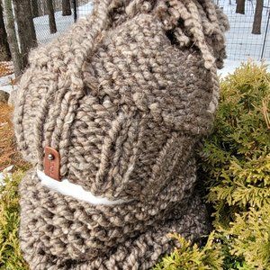 Sweater/pullover with matching hat and scarf.