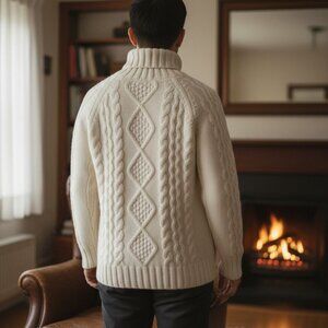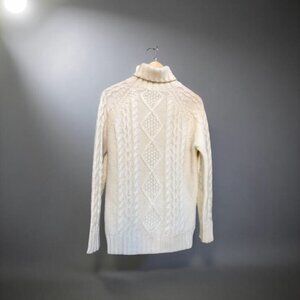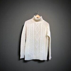 WoolOvers Men's Off-White Turtleneck Sweater British Wool Cable Knit Size Small