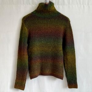 Wool-blend Turtleneck Sweater Ombré Rainbow Sunset Stripes Women's Small