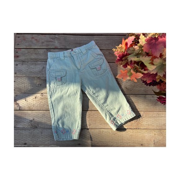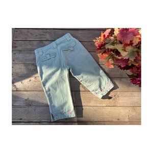 Woolco Mint Green Capri Pants Pink Embroidery Trim 100% Cotton Sz 5