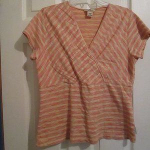 Woolrich v neck cross over stripe top. short sleeve. multi color