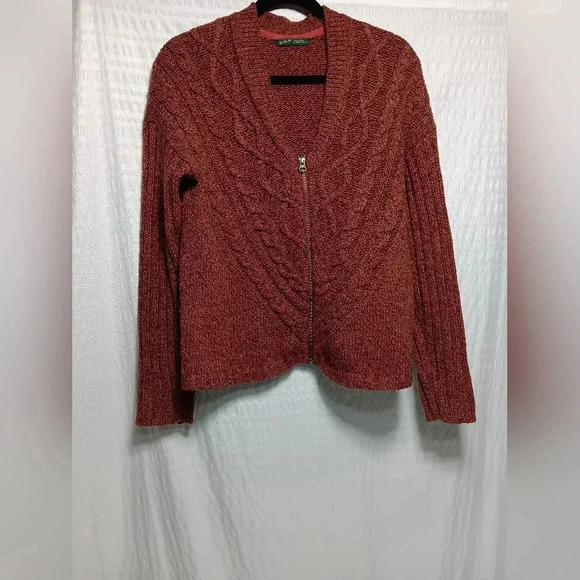 Woolrich 1/2 Zip ladies V Neck Cable Knit Sweater. Size S.