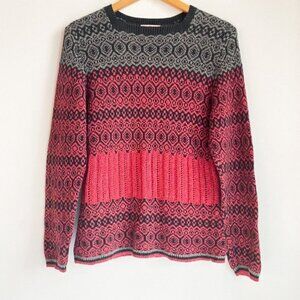 Woolrich Fairisle Black Red Print Cotton Sweater S