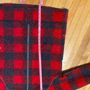 Women's Sz S wool oversized shirt jacket with Hhod, zipper and pockets.