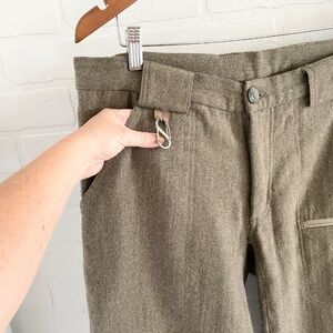 Woolrich Men's Wool Pants Tweed Herringbone Beige tan Green Pockets 34 x 32