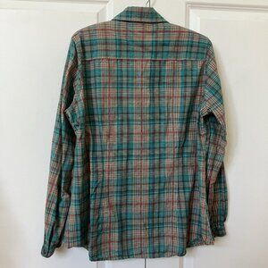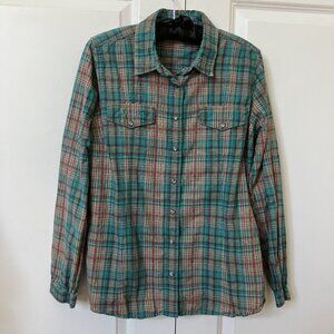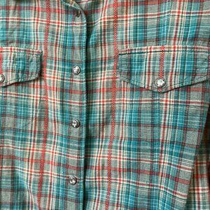 Woolrich Pearl Snap Shirt Womens L Blue Plaid Western Cowgirl Rodeo