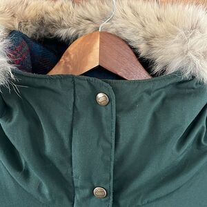 Woolrich Vintage Coyote Fur Trim Parka Green Plaid Lined Coat XL
