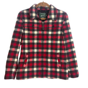 Woolrich Vintage Plaid Jacket Red Black Grey Cream SP Zip Front Pockets