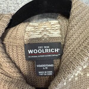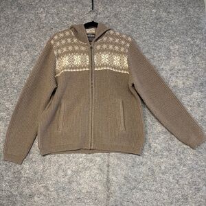 Woolrich Women’s Brown Fair Isle 100% Wool Zip Hoodie Sweater Jacket Size L