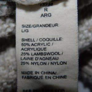 This Womens Large Woolrich Wool blend cream beige Mock neck Sweater is in great clean condition. Sweater is 50% Acrylic - 25% Wool and 25% Nylon - Dry Clean only.
