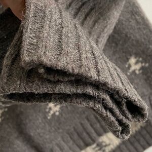 Woolrich Wool Long Sleeve Turtleneck Sweater Snowflakes Grey Cream XS