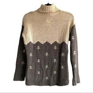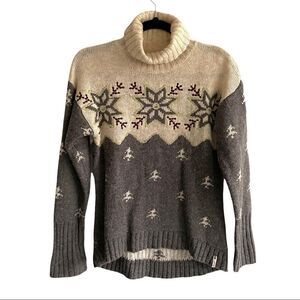 Woolrich Wool Long Sleeve Turtleneck Sweater Snowflakes Grey Cream XS