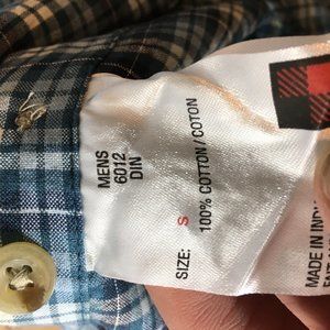 Men's Small Plaid Short Sleeve Button Down Shirt.