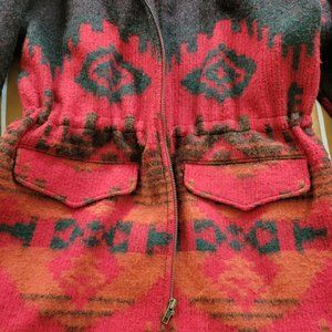 Woolrich Wool Blanket Coat Southwest USA Navajo Aztec Women’s Large Red.