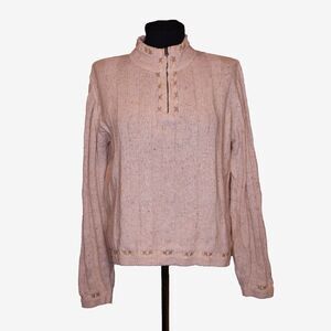 Woolrich Vintage 3/4 Zip Copped Ecru Oatmeal Knit Sz S