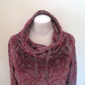 Wooly Bully Wear (Colorado) fleece sweater. Color: Fushia/Grey. SIZE: M (armpit to armpit measures 20") . Cozy up this winter with the Wooly Bully cowl sweater. Sweater is made with a soft and warm polyester fabric that’s sure to keep you cozy. The geometric pattern is accented by a cowl neck collar that looks great with leggings or jeans.Features: