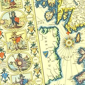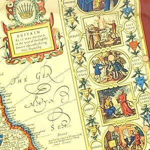 Worcester Ware Tray Britain Map Heptarchy Old Tyme Saxons Metal Box Product 14 x 20 inches.