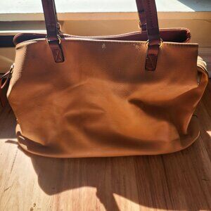 - three seperate compartments. Two closed with metal button and one closed with zipper.