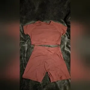crop top with hih waisted shorts and a scrunch on the butt. size L