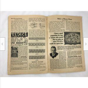 Vintage "The Workbasket" Magazine from May 1954 has knit & crochet patterns for doilies, zig-zag lace, buffet scarf, huck weaving & more. Interesting home & garden articles, and the ads are fun to read through for a glimpse into 1950s life. Magazine is in pre-owned condition, with some folded over corners, and the address label on the front is partially cut off. Has name written in pencil on front cover. 8" x 5 1/2", 48 pages.