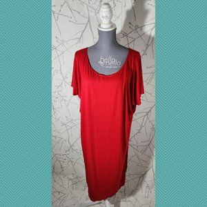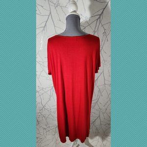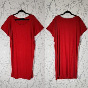 Workhall Red Scoop Neck Long Loose Fit T-Shirt Dress