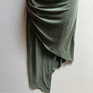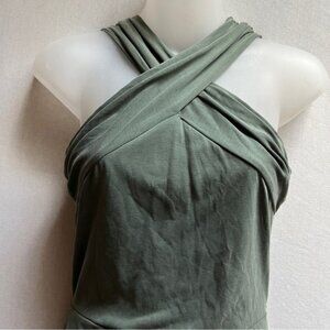Workhall Sage Green Draped crisscross halter Ruched Asymmetrical Dress Sz S