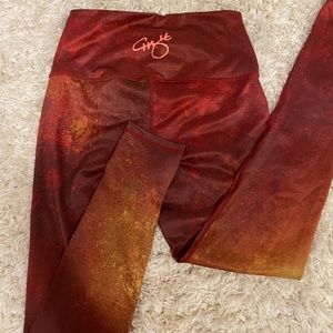 Medium bottom, Medium top Red/yellow workout set. High rise leggings + racer back sports bra