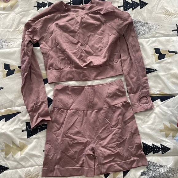 Booty lifting shorts crop top long sleeve