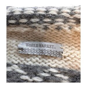 World Market Wool Hand Crafted Nepal Nepalese Knit Ivory Gray Icelandic Poncho