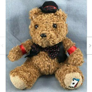 OFFICIAL World Poker Tour WPT Plush Brown Bear with Hat, arm bands, and Bow Tie. 8" tall. Ace of Spades is embroidered on foot.