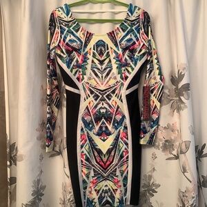 World of couture size M black/multi coloured body con dress form fitting