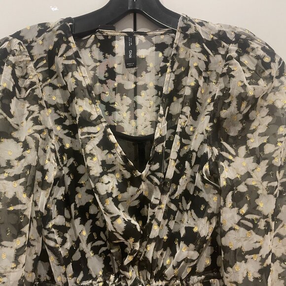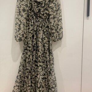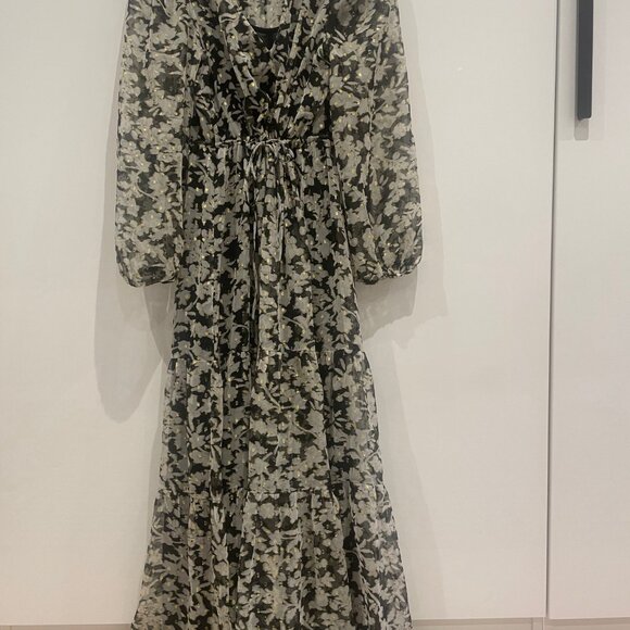 Beautiful goddess dress. Sheer with built in lining. A little gold sparkle, draw string waist to adjust size, V neck.