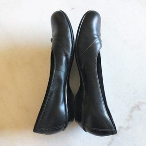 Worn once! Like new Clarks women's black leather flats shoes, great support