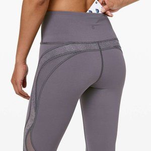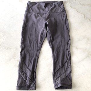 Worn once! Lululemon wunder under crop 21" lace (moonwalk) grey full on luxtreme