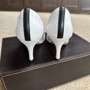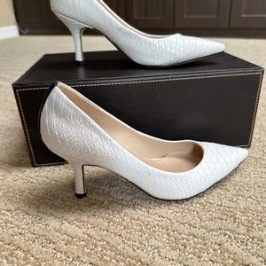 White leather snakeskin Harper Heels by EmmyDeveaux. Worn once.