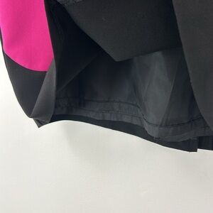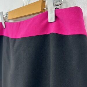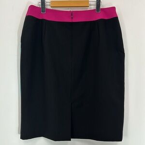 Popping colours with an interesting design. Fully lined, a zipper up the back and a slight slit for flexibility. It would go with any of your black blazers or jackets, and I can just see how stunning this would look with a gorgeous blouse tucked into it.