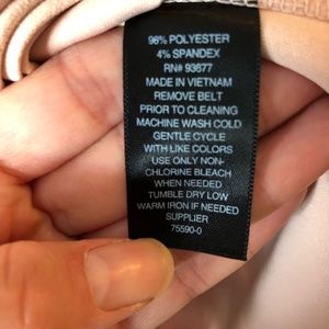 In excellent pre-owned condition, Women's size 12, Worthington Blush Pink Belted knee/midi length skirt. There is one please in the front with some darting in the back to add structure. Perfect to dress up or business casual. There is one little smudge on the belt that isn't noticeable and can be removed with a wash. Please see photos for measurements.