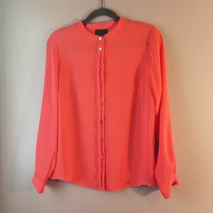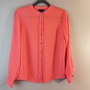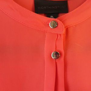 🌞 Worthington Coral Sheer Blouse | Silver Buttons, L