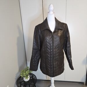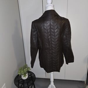 Stay warm and stylish with this brown leather jacket. Perfect for any occasion, this jacket offers both comfort and elegance.