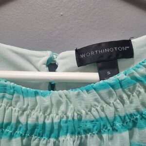 Worthington sleeveless horizontal striped top in an array of pinks and blues